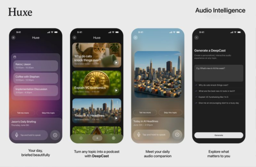 Huxe AI bundelt daily briefings op basis van jouw input, een gepersonaliseerde feed en DeepCasts in één audio-first interface.